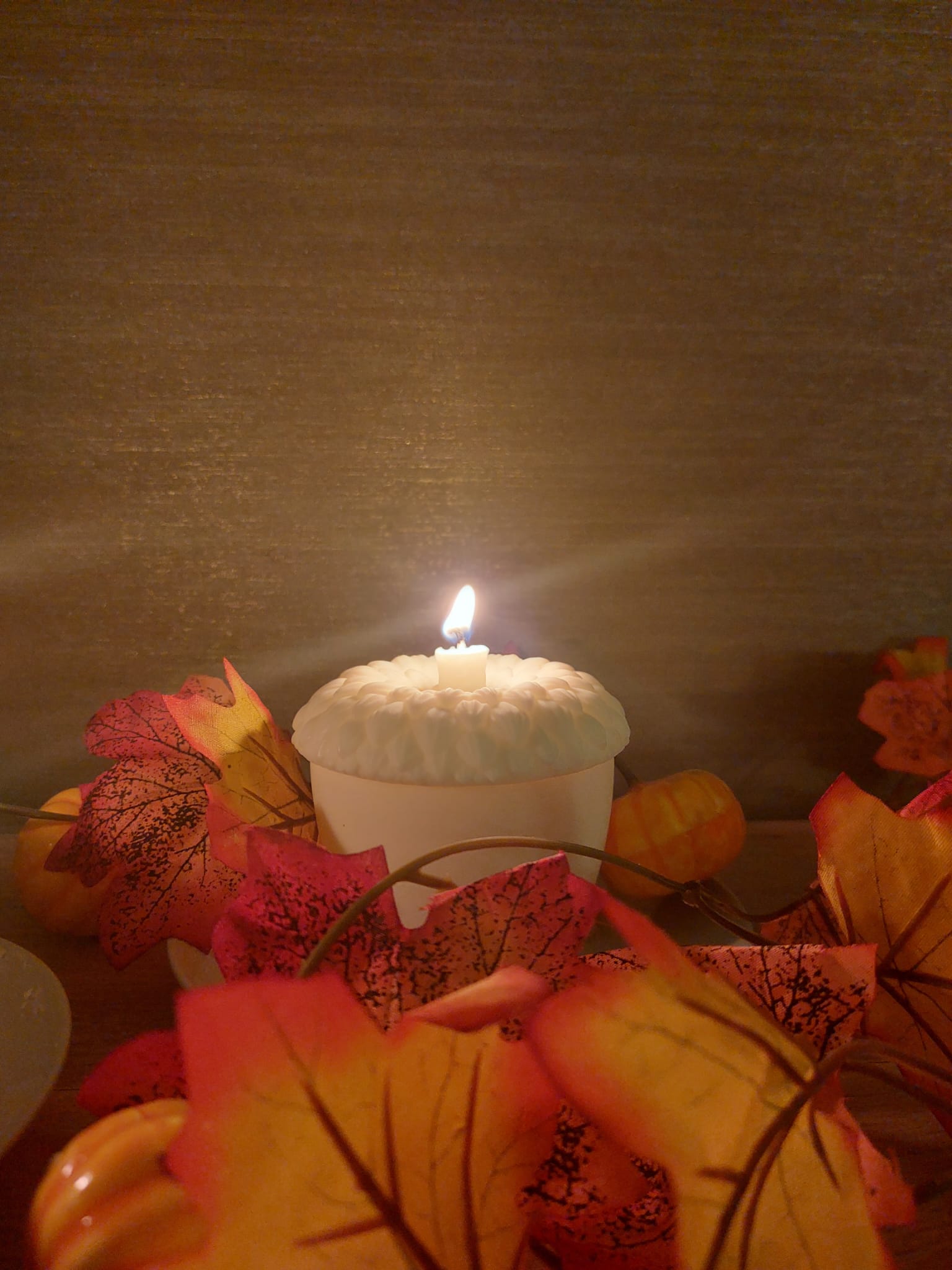 Deze kaars geeft uren warmte en licht in de donkere dagen. Of decoratief in een herfsttafereel. Gemaakt van natuurlijke was en met katoenen lont.