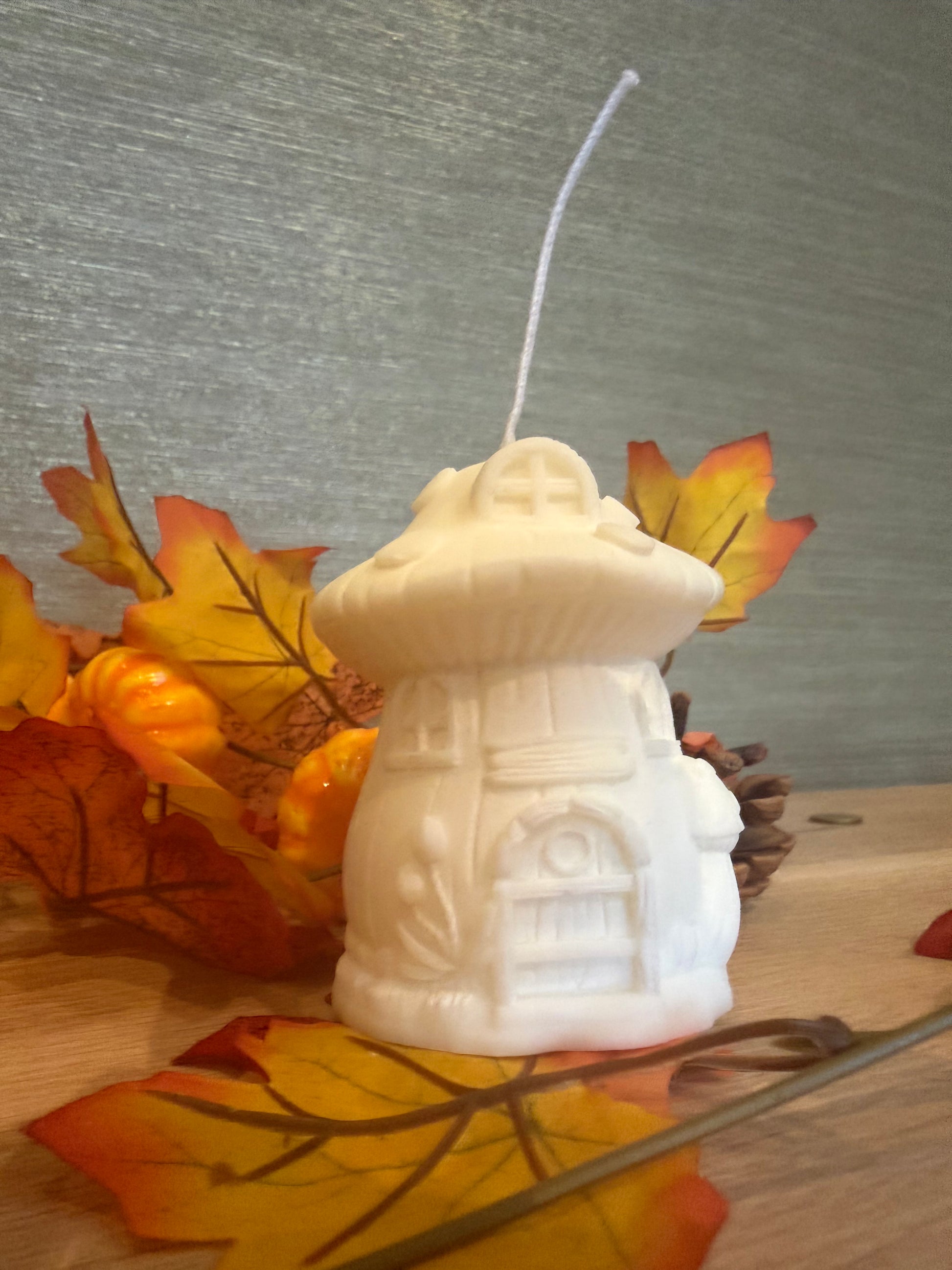 Van wie o wie zou dit huisje zijn, een elf, een dwerg ... wie weet! Magisch is het in ieder geval! Gemaakt van natuurlijke koolzaadwas met een katoenen lont.
