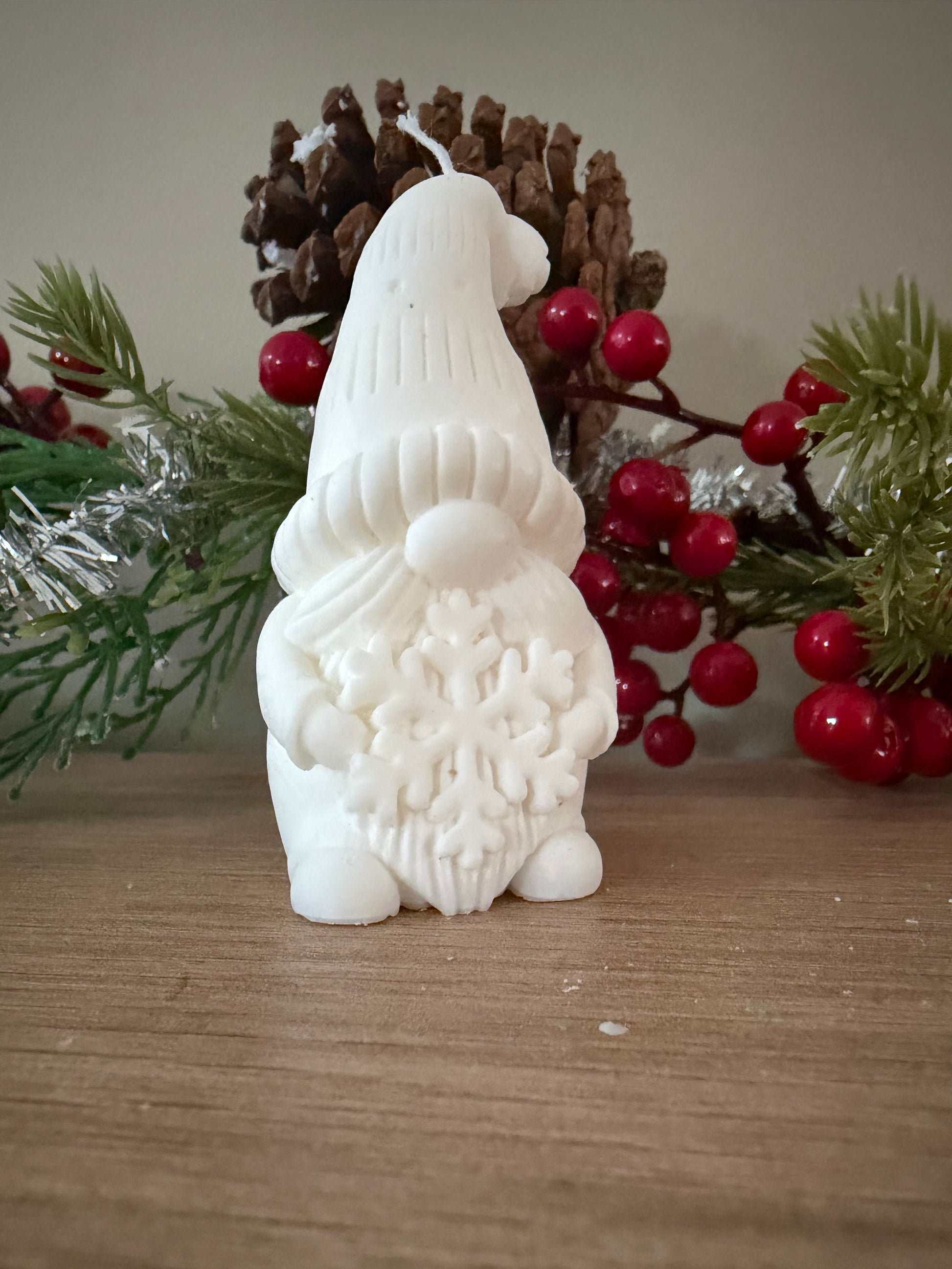 Kabouter met sneeuwvlok! Gemaakt van koolzaadwas.