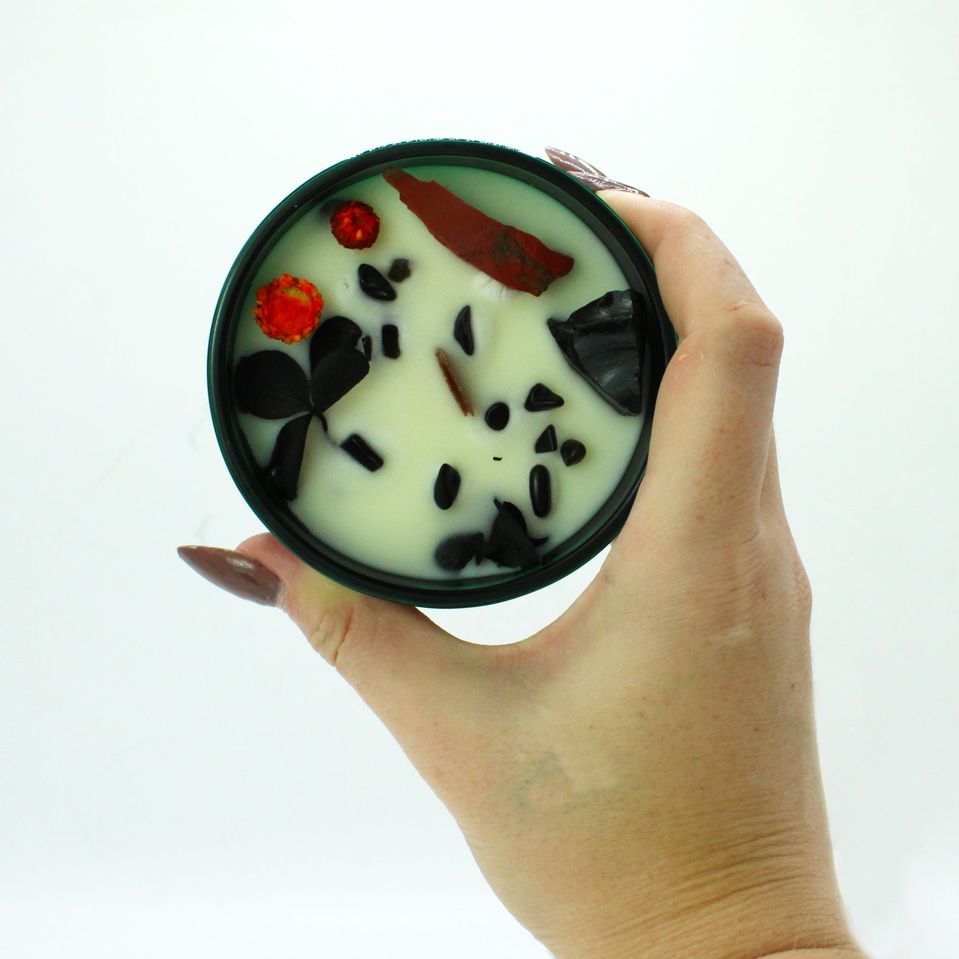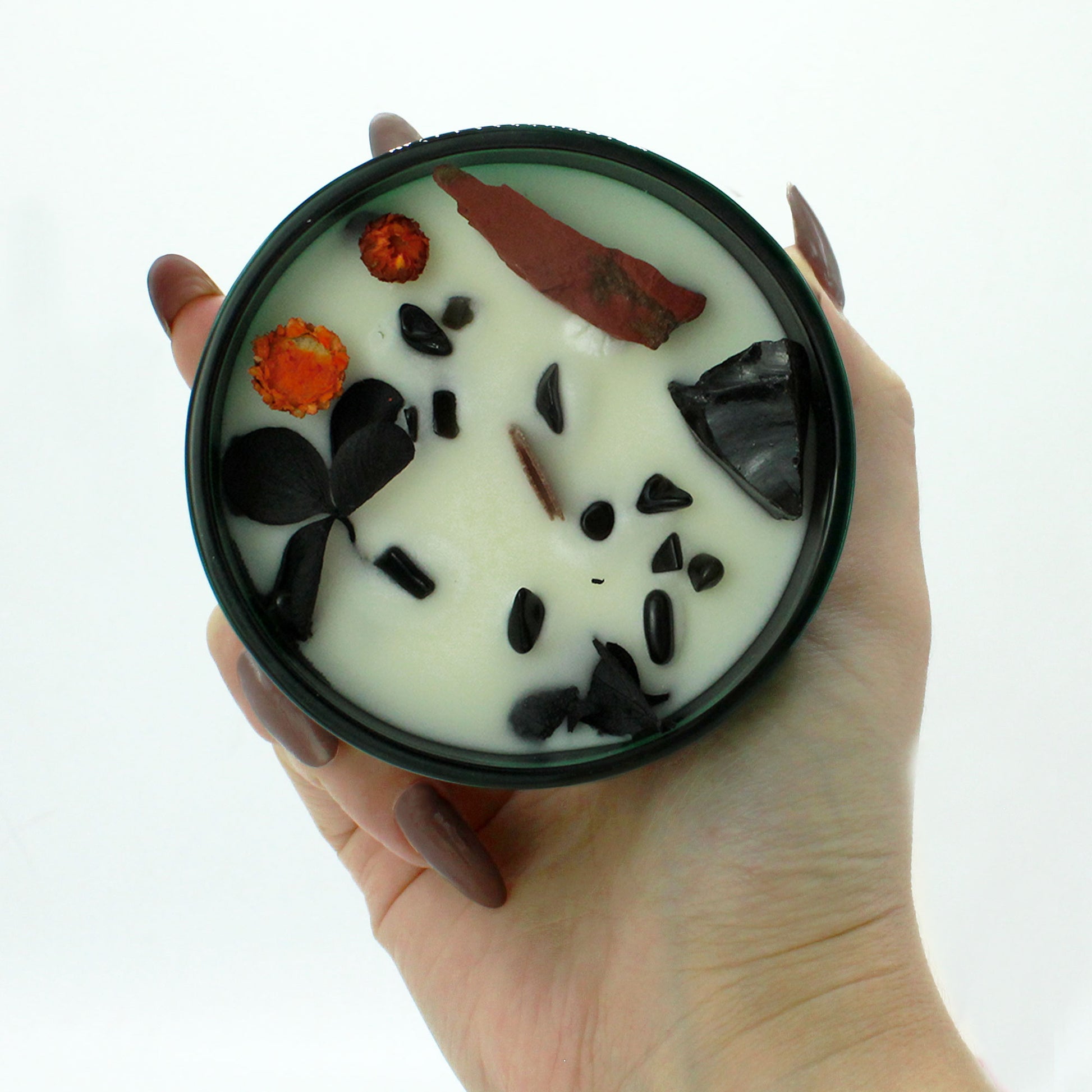 Soy Wax, Fragrance, Glass, Gemstones |